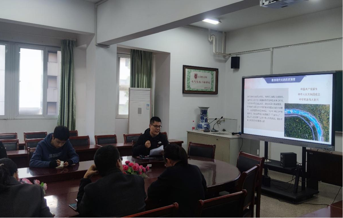 11月24日下午,我院青年博士党史宣讲团成员、中国近现代史纲要教工党支部周杨博士应邀为电气信息工程学院电气工程系党员宣讲党的二十大精神,并开展支部共建活动,电气工程系教工党支部和学生党支部全体党员参加本次活动。