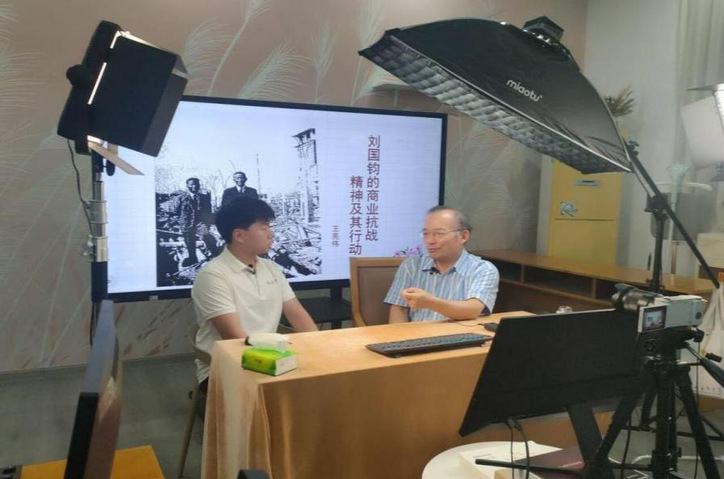 今年是中国人民抗日战争暨世界反法西斯战争胜利80周年,为了挖掘常州工业遗产中的抗战故事与抗战精神,实践团队专门访谈了常州市刘国钧文化研究中心主任王亮伟校长。王校长作了《刘国钧的商业抗战精神及其行动》讲座,王校长认为刘国钧的商业抗战的行动路线,是一条从江南工业重镇常州出发,溯江而上,穿越战火与险阻,最终在巴山蜀水间重燃民族工业之火,并以其光芒照亮抗战前线的壮丽征程,那么这条行动的轨迹,深刻诠释了在民族危亡之际,真正的民族资本家不仅是以资本着力,更是以产业为脊梁,以气节为灵魂,为国家存续而战的勇士。刘国钧的商业抗战精神与行动,是实业救国理念在抗战烽火中最悲壮也最辉煌的实践,为中国民族工商业史和抗战史写下了不朽的篇章。最后,团队成员围绕刘国钧商业抗战精神特点及其爱国主义教育价值与王校长进行了深入交流。