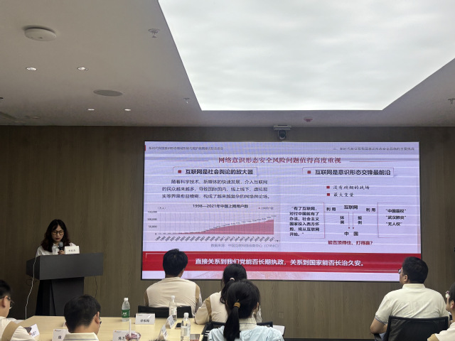 刘春燕博士围绕“新时代意识形态领域基本形势”“安全挑战”和“维护举措”三大主题展开,系统分析了我国意识形态安全面临的复杂形势,强调在百年变局与科技变革背景下,意识形态斗争的隐蔽性与严峻性;她指出西方意识形态渗透、网络思潮冲击等问题需引起高度重视,引用习近平总书记“三个事关”的论述,阐明意识形态安全对党和国家事业发展的根本性意义;她提出强化理论武装、创新传播方式、压实主体责任等举措,倡导将意识形态工作融入企业文化建设,筑牢思想防线。
