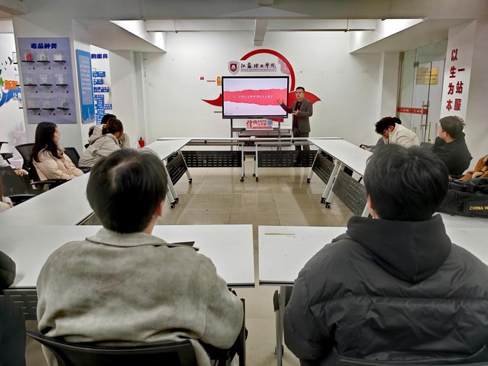 为深入学习宣传习近平法治思想,大力弘扬宪法精神,引导青年学生增强法治观念、坚定法治信仰,12月4日国家宪法日当天,我院思想道德与法治教研室程金池老师作为驻院思政导师,为经济学院学生干部代表作题为《弘扬宪法精神坚定法治信仰》的专题讲座,为在场学子送上了一堂深刻的宪法教育与思政教育融合课。
